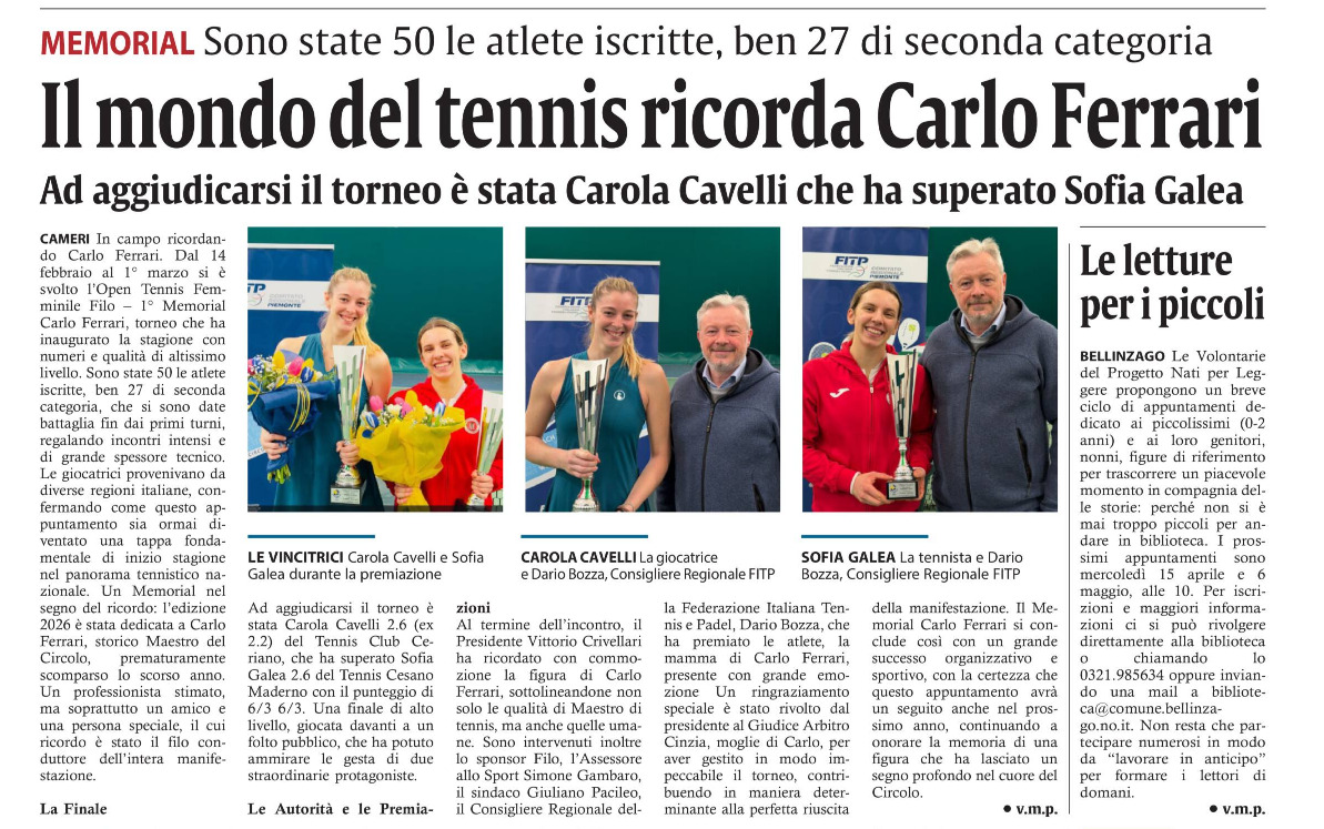 l Presidente e tutto l’ASD Tennis Club Cameri si congratulano con il nostro Vicepresidente Fabrizio Milani, che oggi all’AT Novara ha trionfato nel torneo TPRA! Un risultato che ci riempie d’orgoglio e che testimonia come impegno, passione e dedizione portino sempre grandi soddisfazioni. Ogni vittoria individuale è una vittoria di squadra: questo successo è anche il successo del nostro Club, che continua a crescere e a farsi conoscere con entusiasmo e determinazione. Bravo Fabrizio! Sei l’esempio di quanto il nostro Tennis Club sia vivo, forte e pronto a raggiungere sempre nuovi traguardi!